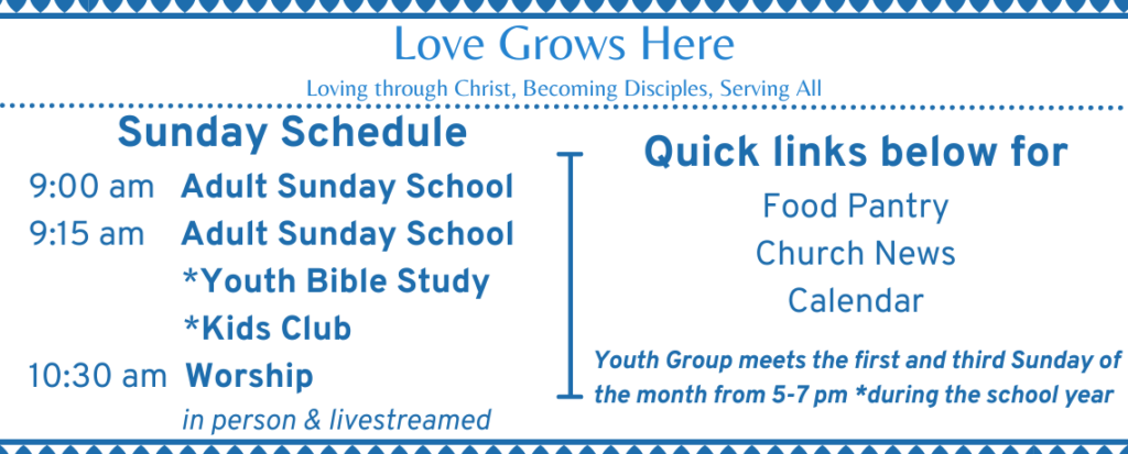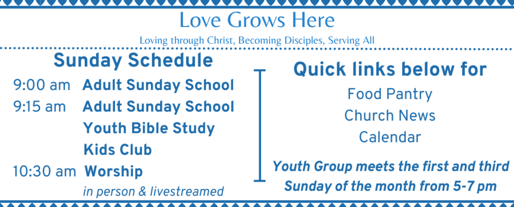 Youth Group – the first and third Sunday of the month from 5-7 pm during the school year. (returns in September)