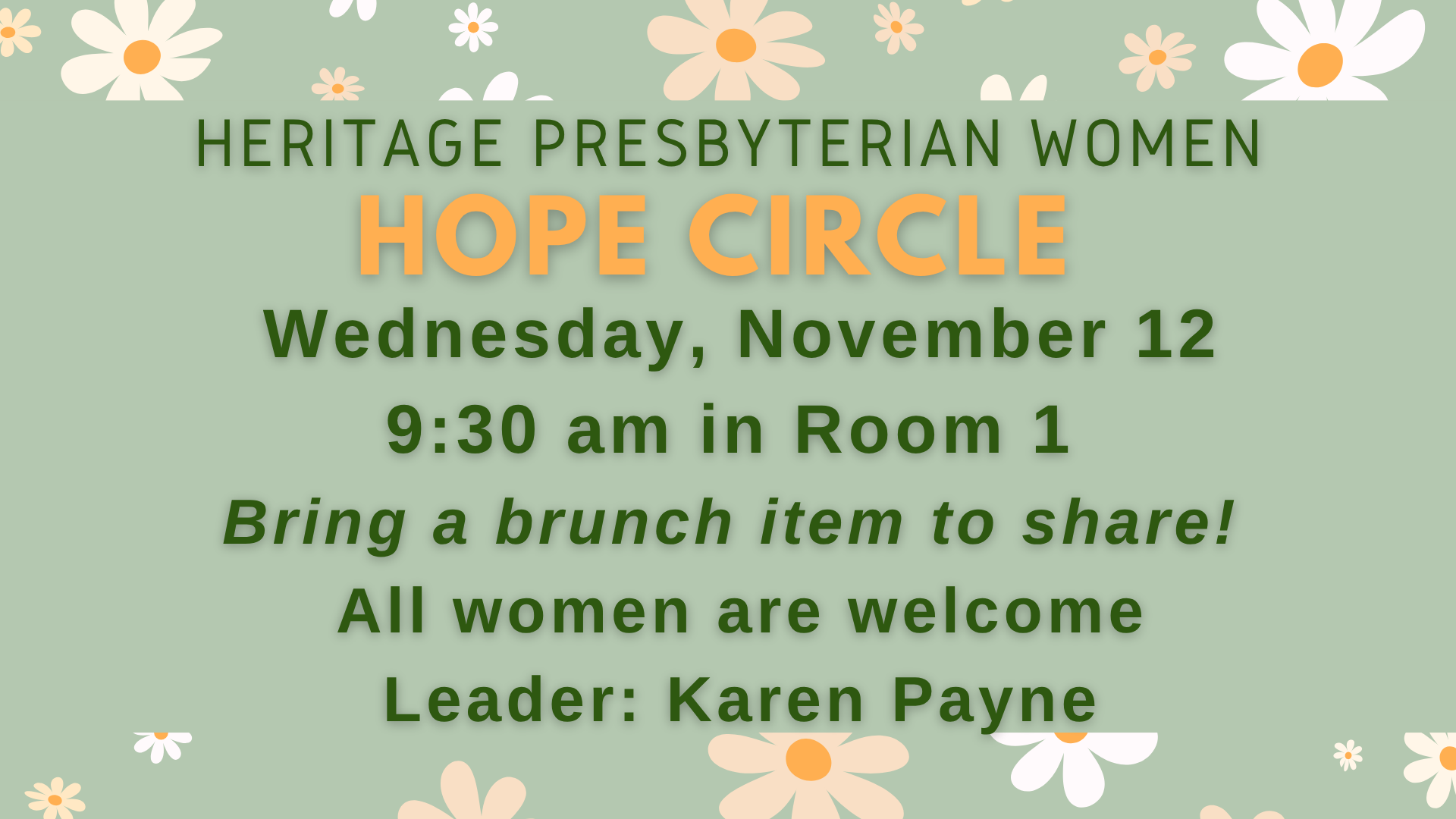 For more information about events and activities, please contact an HPW officer, check your bulletin, newsletter or the HPW bulletin board across from the Pastor’s’ office.