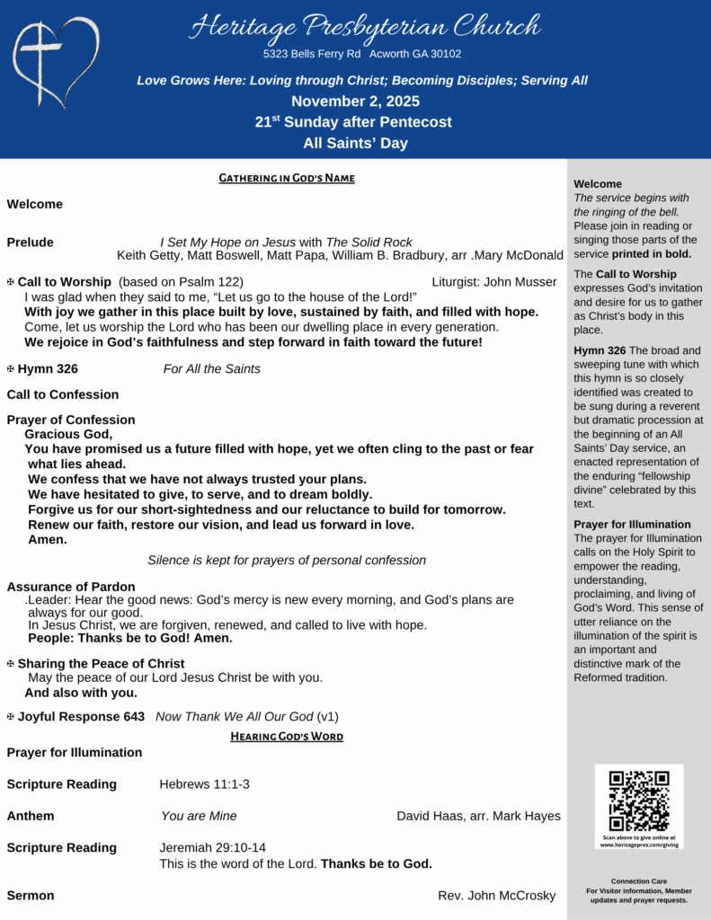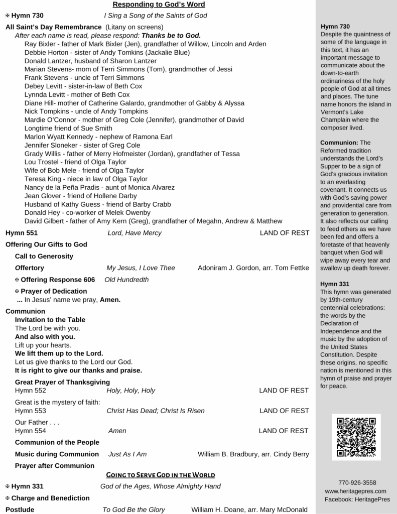 - Order of Worship Nov 2 con’t